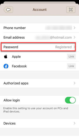 4. สำหรับในหน้า Account > แตะเลือก password