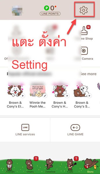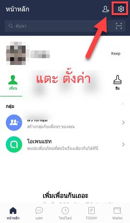 1. เมื่อเปิดเข้ามาที่แอปไลน์ เราก็เข้าสู่การตั้งค่า Setting ที่รูปไอคอนฟันเฟื่อน ซึ่งอยู่ด้านบนขวา