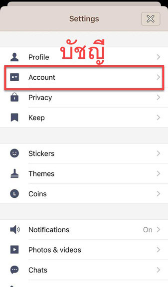 3. แตะเลือก Account บัญชี