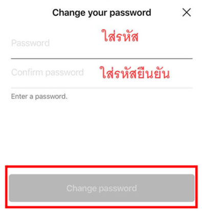 6. การตั้งรหัสผ่านใหม่ โดยในช่องแรกพิมพ์รหัสใหม่ และพิมพ์รหัสอีกครั้งเพื่อยืนยันความถูกต้อง จากนั้น แตะการเปลี่ยนรหัสผ่าน “Change your password”