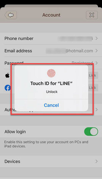 5. สำหรับกระบวนการระบุตัวตน “Identification” ในมือถือ iPhone เพียงแค่ใช้ลายนิ้วมือเจ้าของไลน์ เท่านั้น